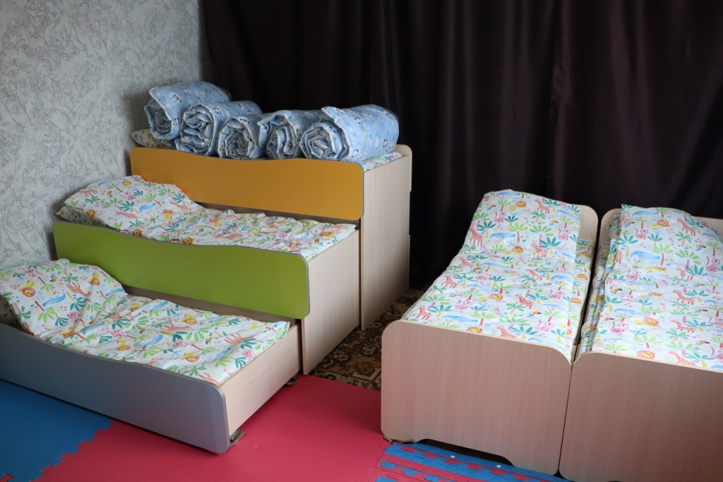 Помещения оборудованы всем необходимым для комфортного пребывания малышей: игровыми зонами, мебелью, постельными принадлежностями, игрушками, средствами гигиены и безопасности.